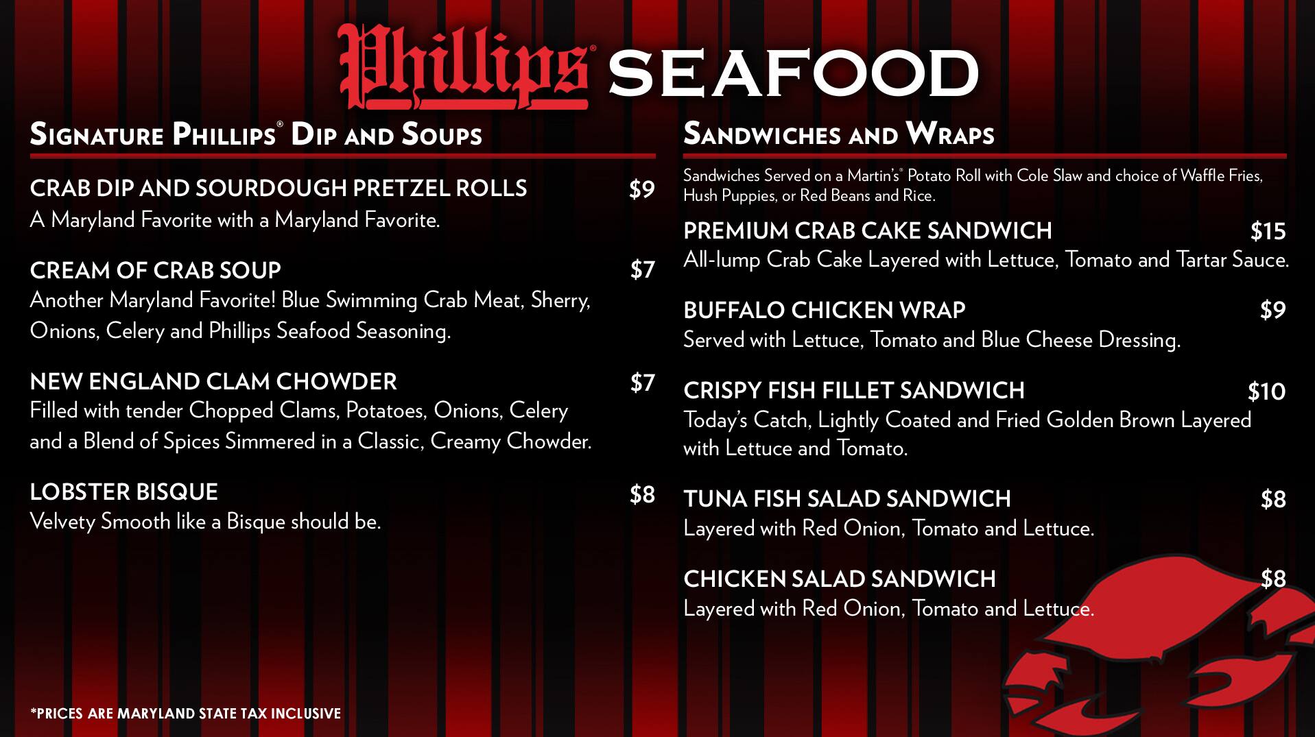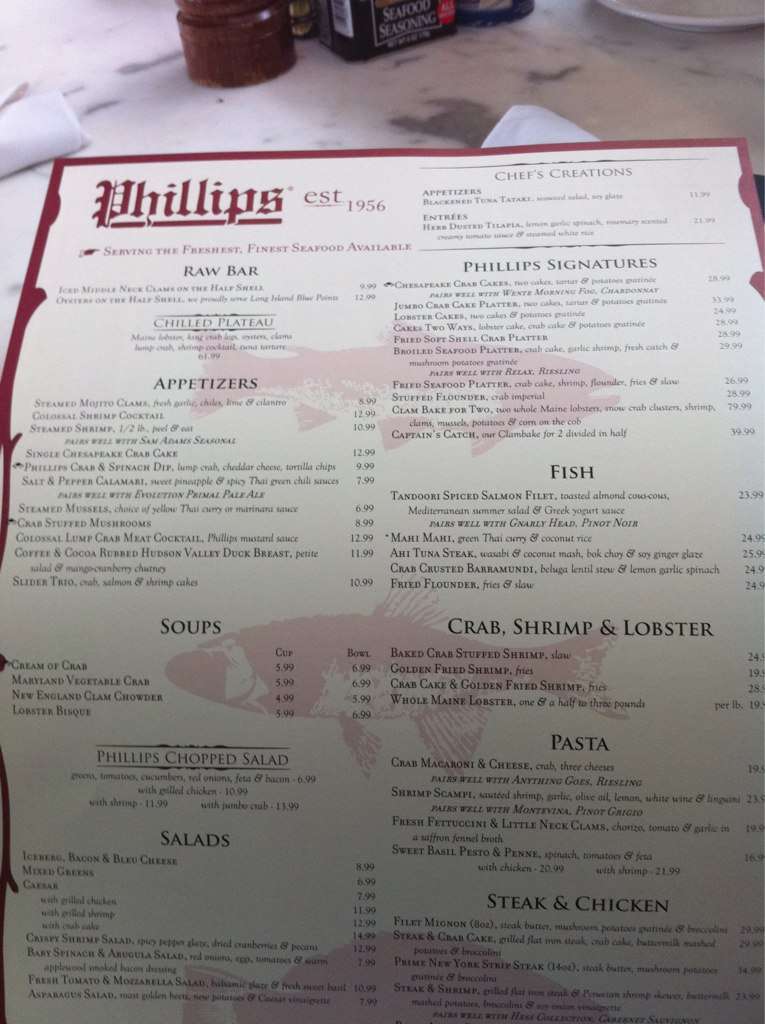 Phillips Seafood Menu